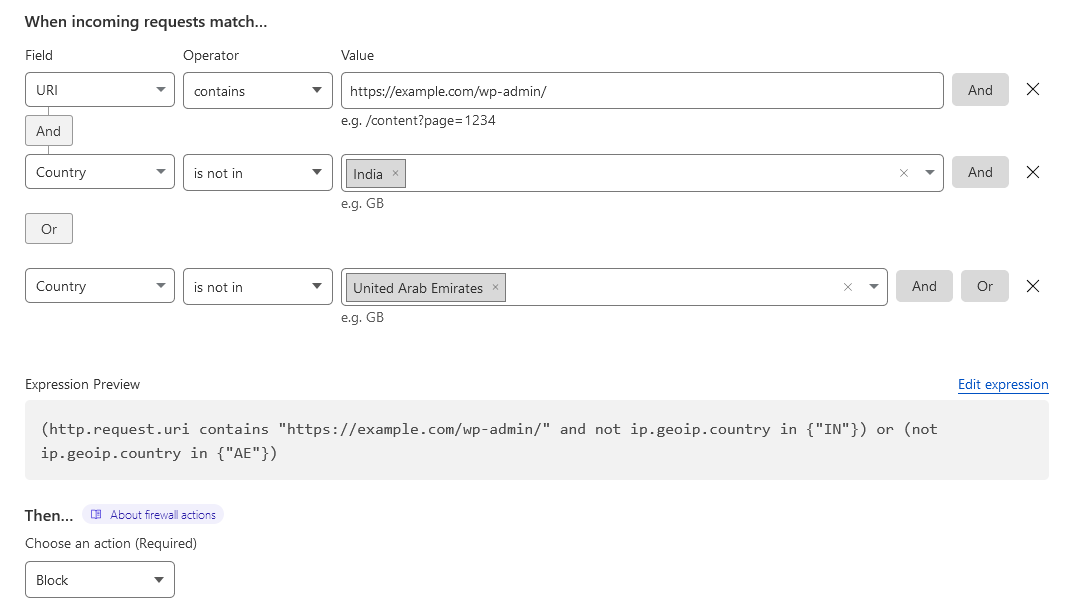 wordpress cloudflare waf rule blocking path